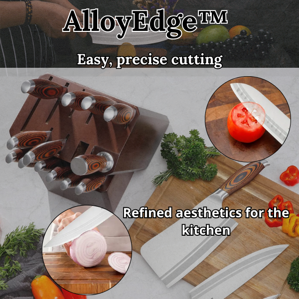 Imagine walking into your kitchen and having in your hands a set of knives that not only meets your every need, but also makes you feel like a true master in the preparation of dishes. The AlloyEdge™ Knife Set is not just a set of tools, but the secret behind every successful culinary creation. Each knife is a promise of precision, elegance and durability, designed to deliver maximum performance, even in the most complex preparations. Its refined quality turns every daily gesture into an extraordinary experience, where passion for cooking and the art of cutting meet.