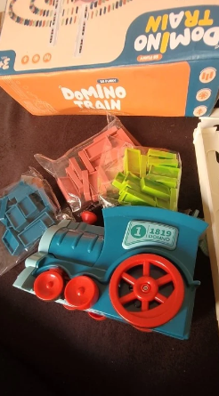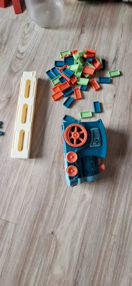 Watch as kids set up a domino trail with ease! This train makes lining up dominos simple, sparking hours of joy and creativity.